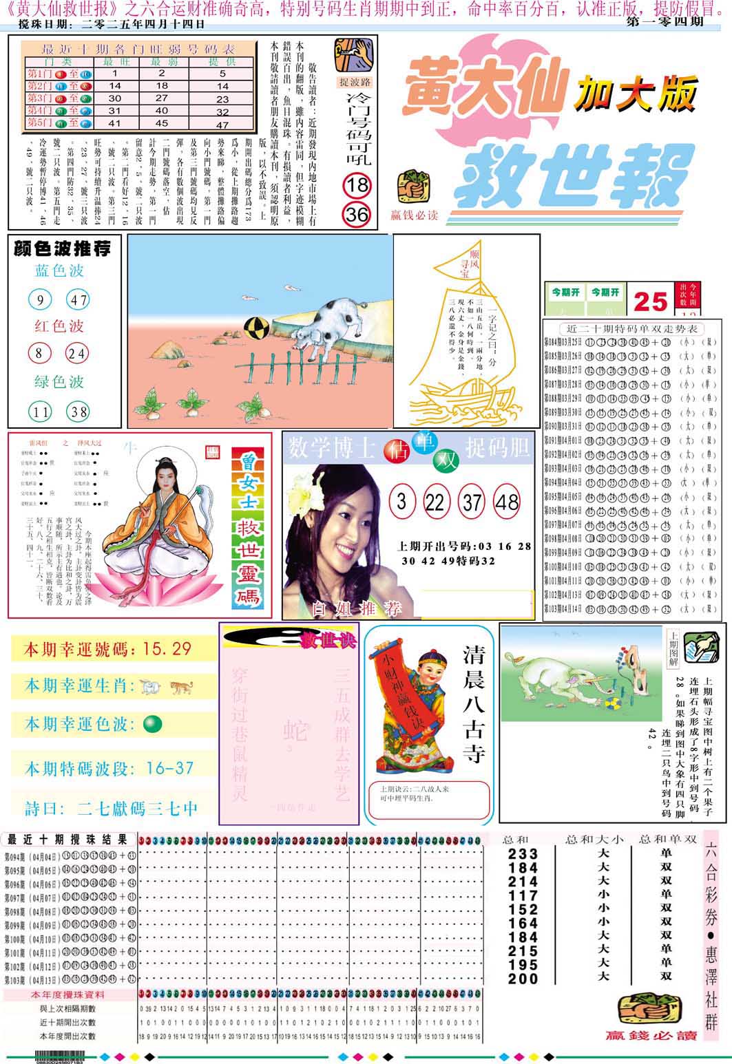 104期黄大仙救世A加大版[图]