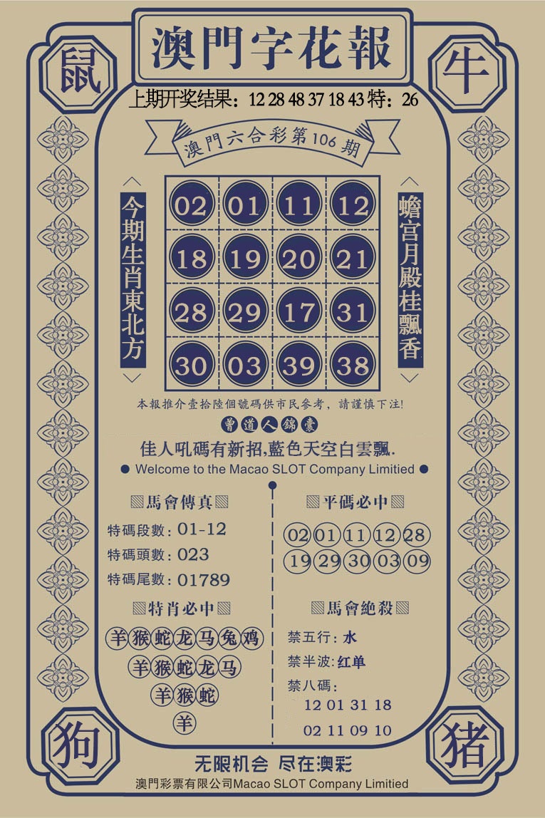106期澳门字花报[图]