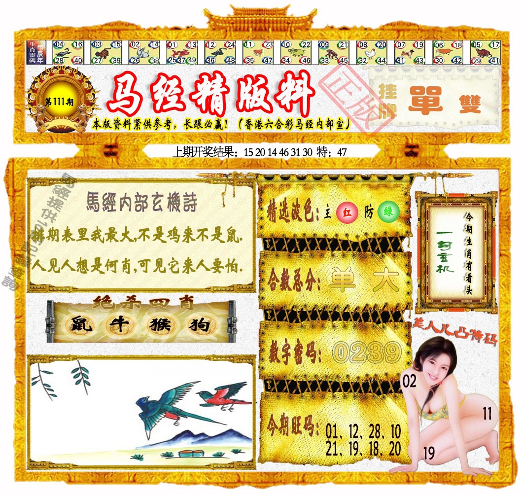 111期马经精版料[图]