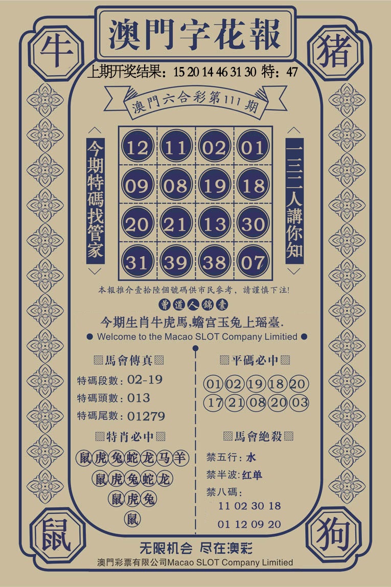 111期澳门字花报[图]
