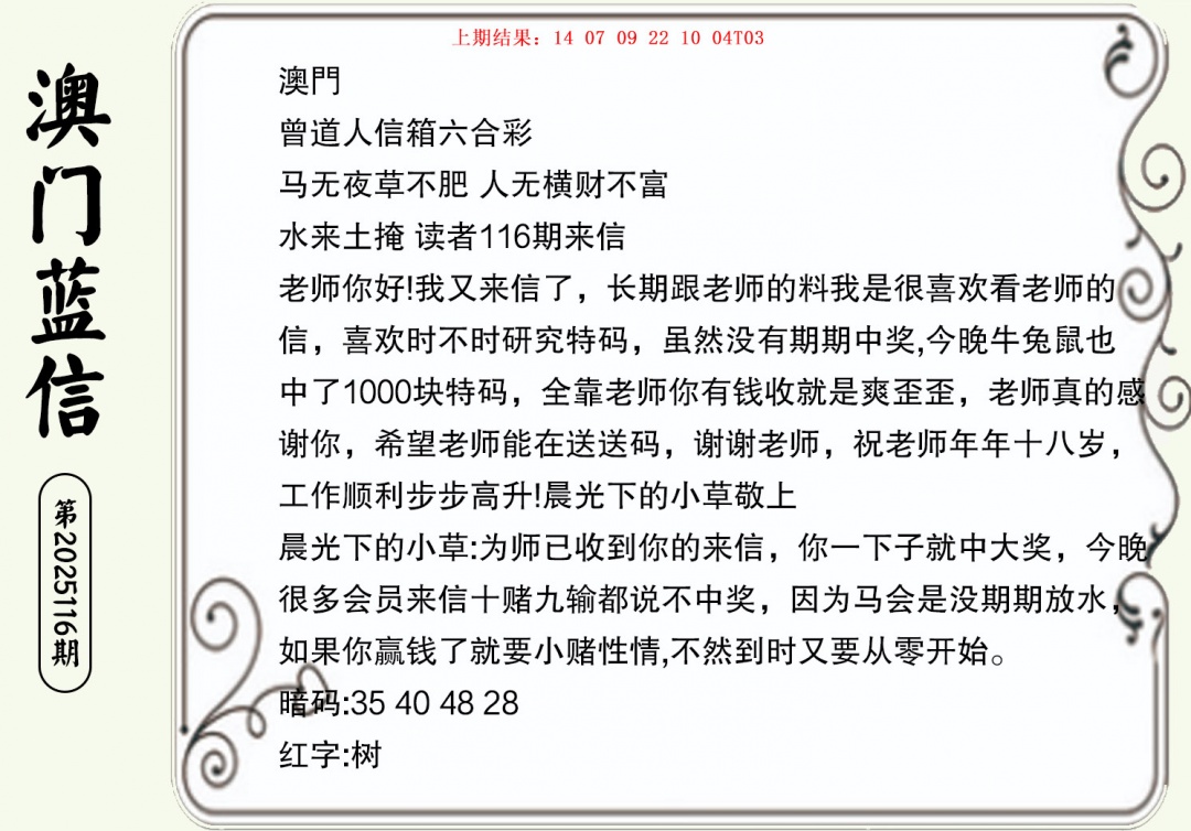 116期澳门蓝信A[图]