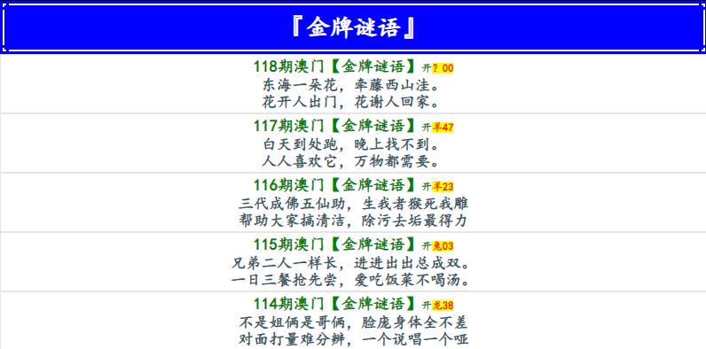 118期金牌谜语[图]