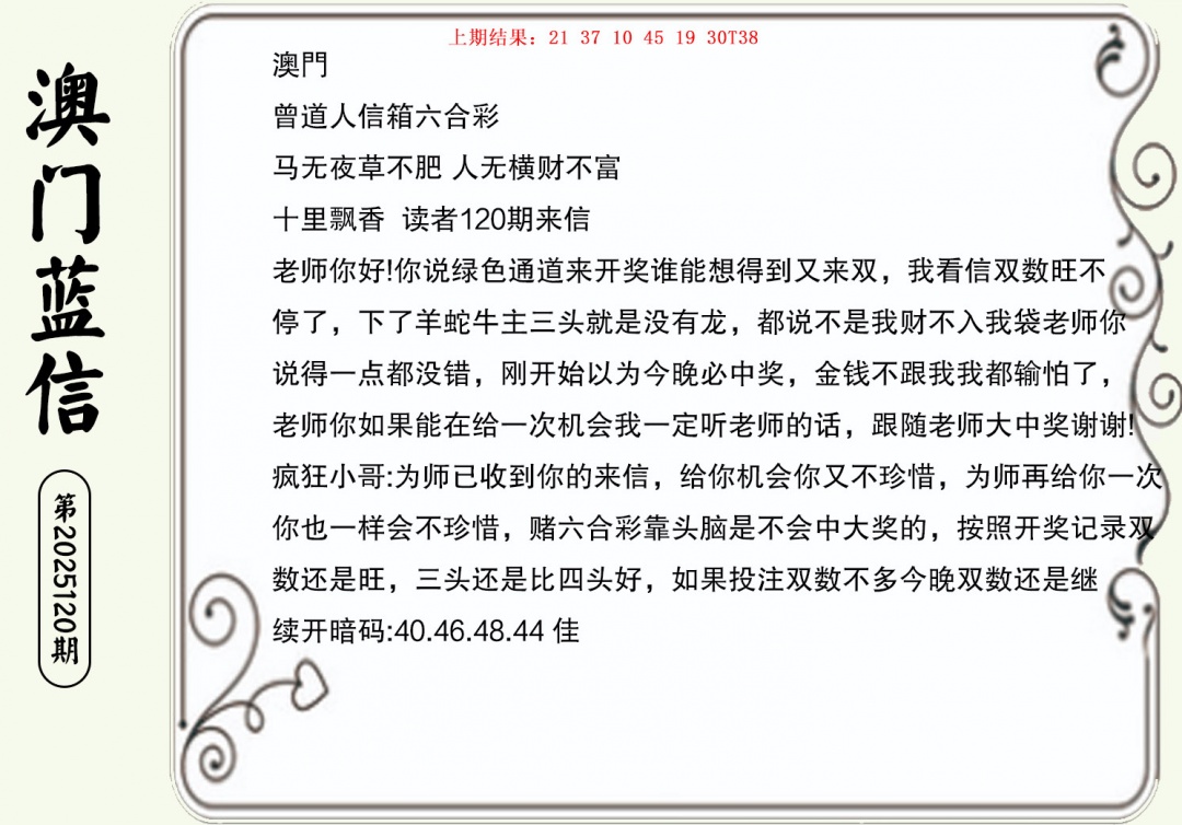 120期澳门蓝信A[图]