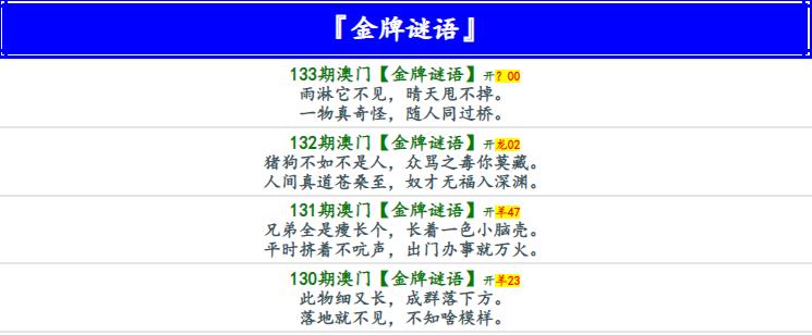 133期金牌谜语[图]