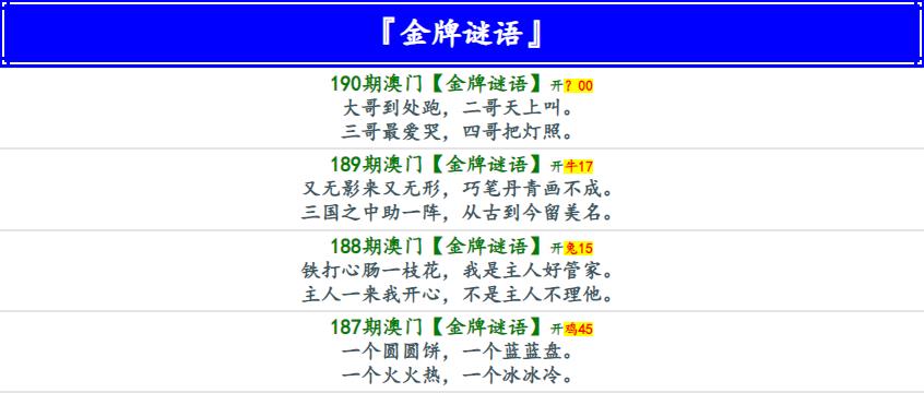 190期金牌谜语[图]