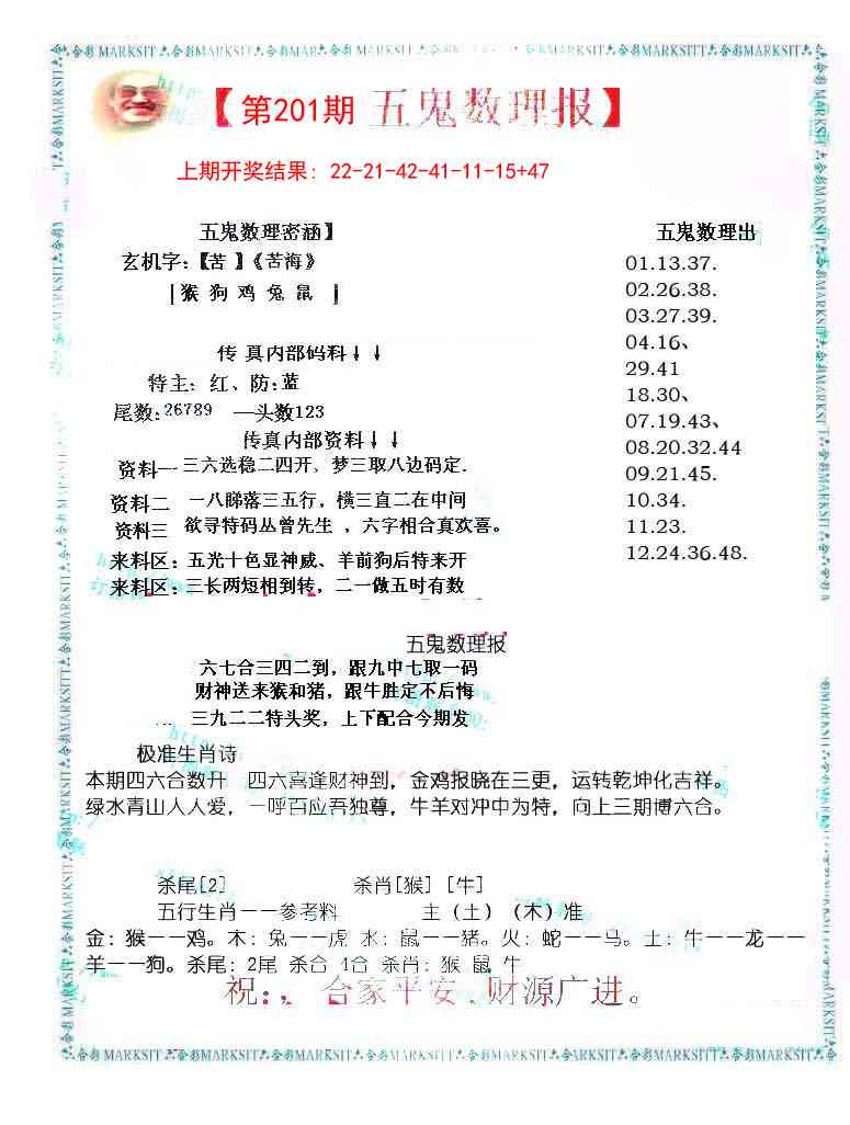 201期五鬼数理报[图]