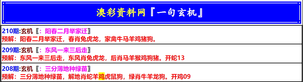 210期澳门一句玄机[图]