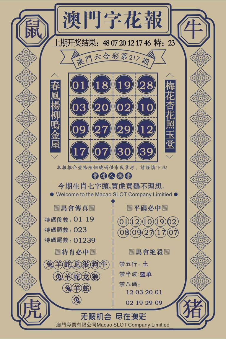 217期澳门字花报[图]