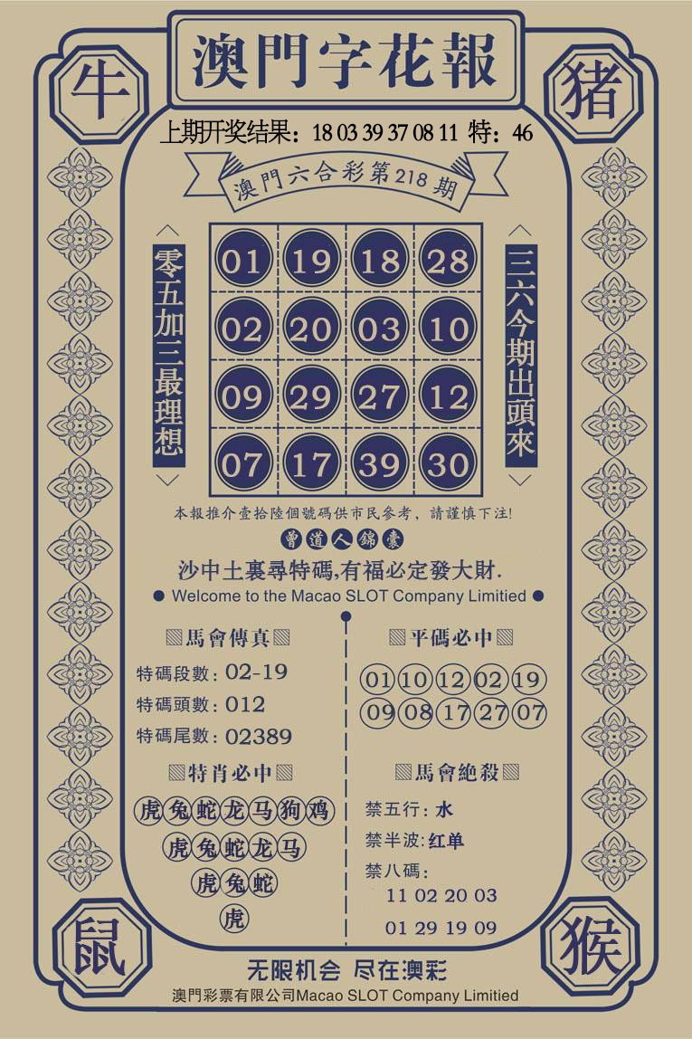 218期澳门字花报[图]