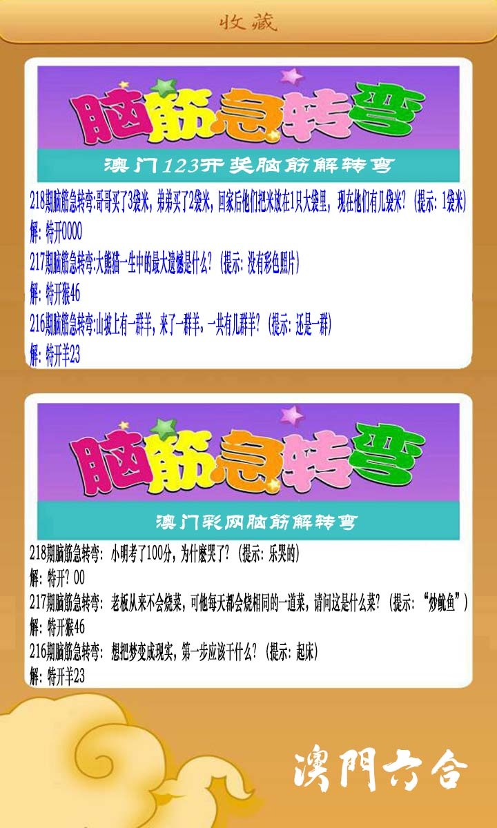 218期澳门脑筋急转弯[图]