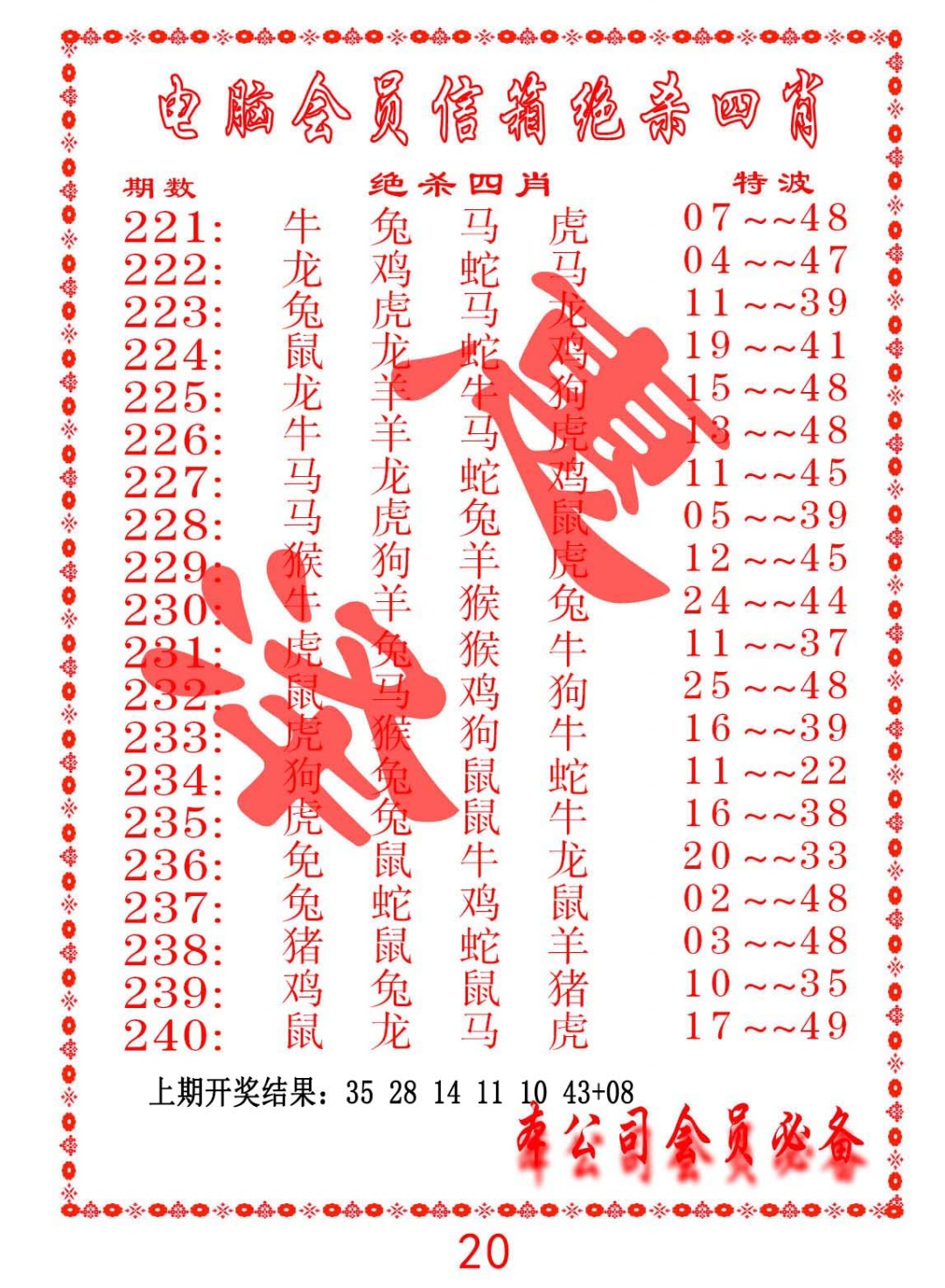 221期电脑会员-绝杀四肖[图]