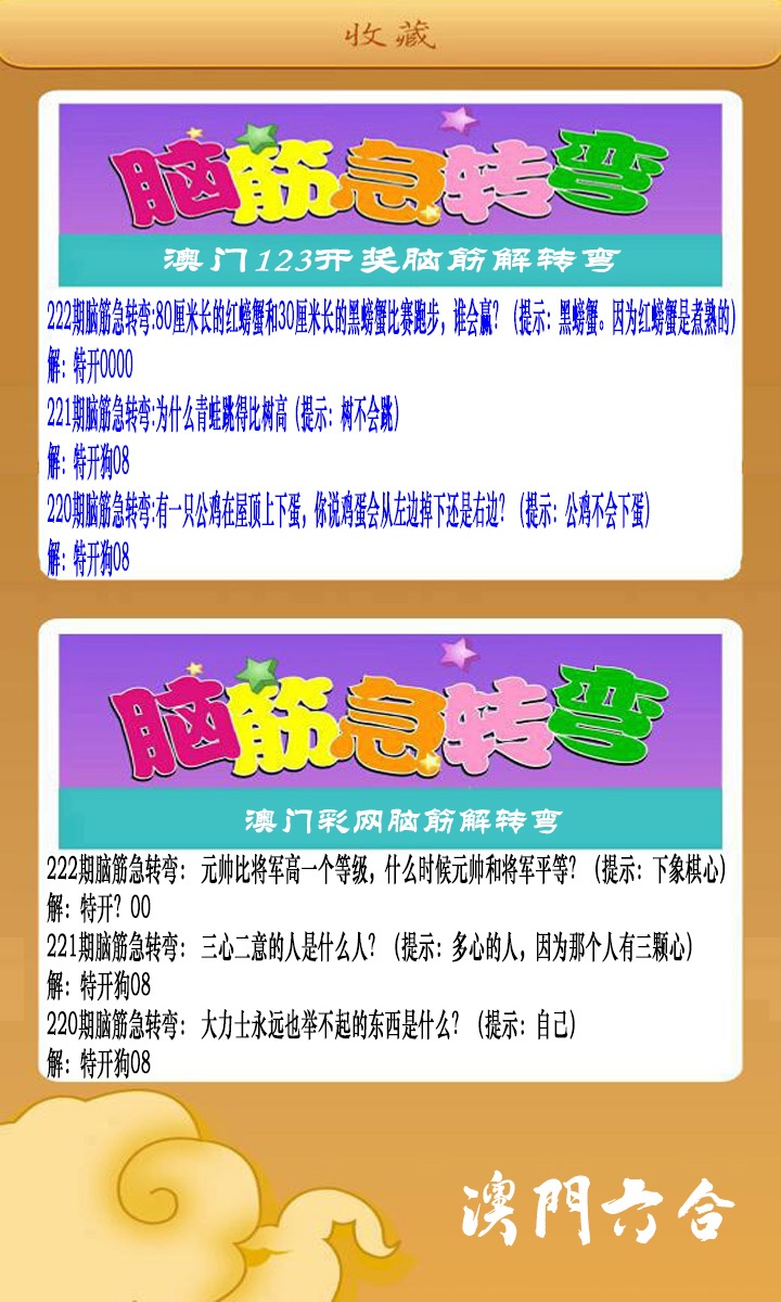 222期澳门脑筋急转弯[图]
