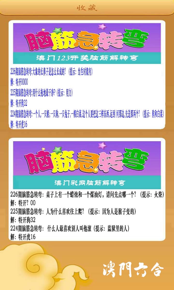226期澳门脑筋急转弯[图]