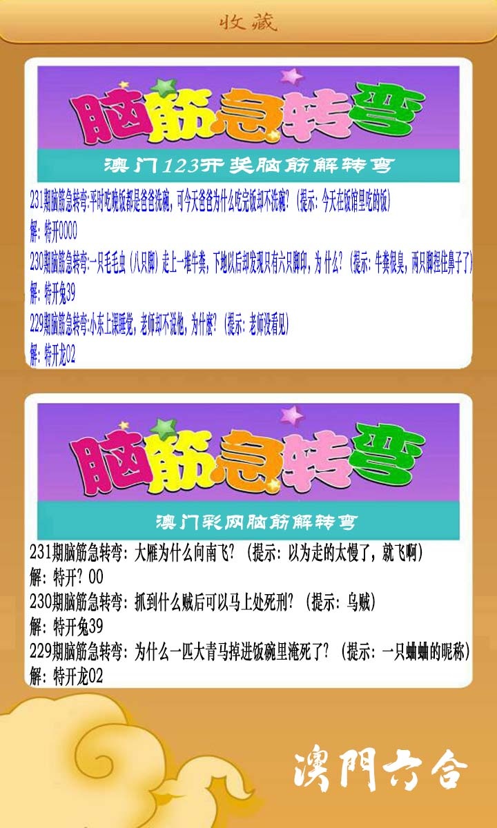 231期澳门脑筋急转弯[图]