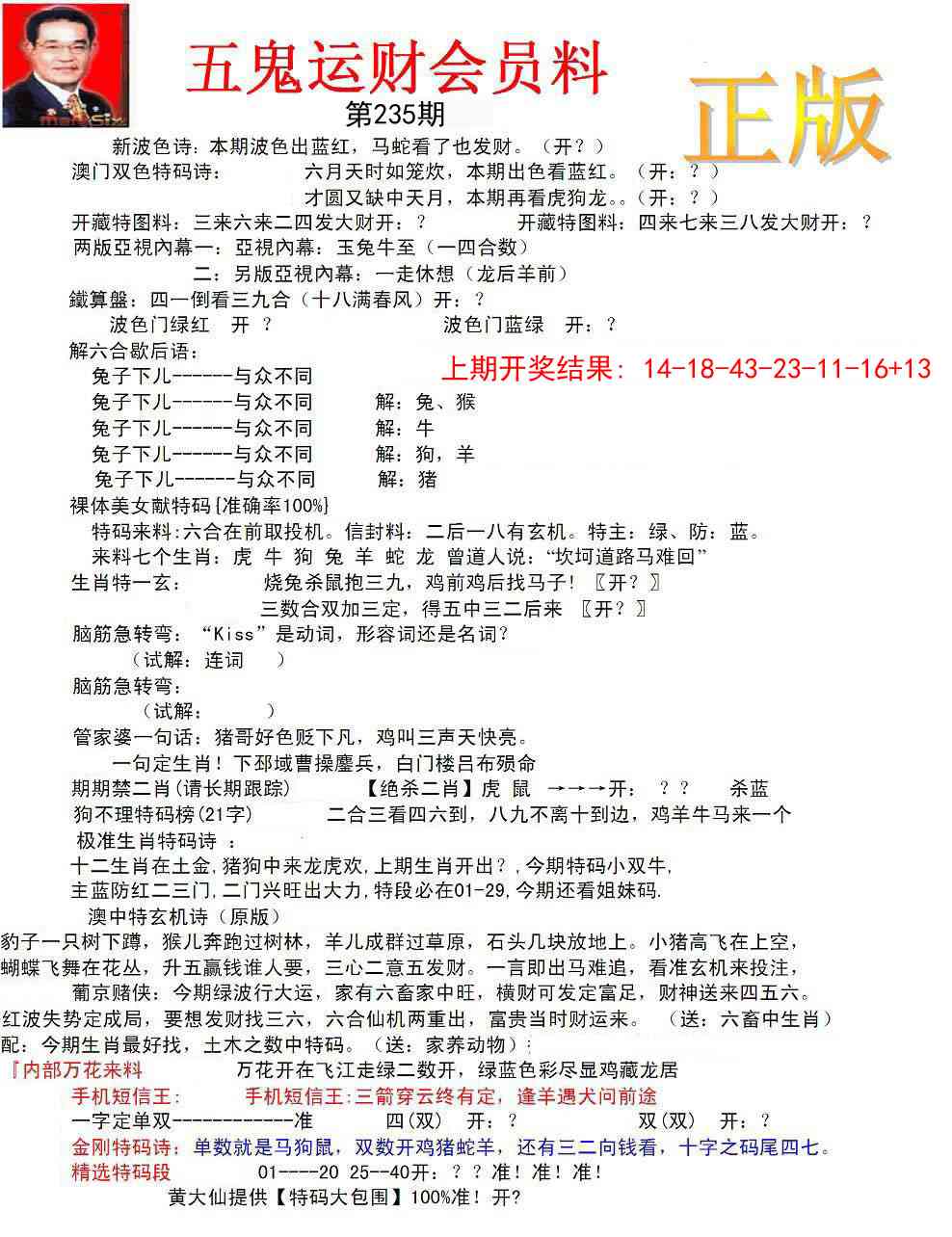 235期正版五鬼运财会员料[图]