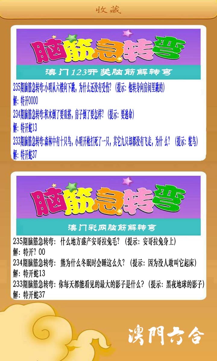 235期澳门脑筋急转弯[图]