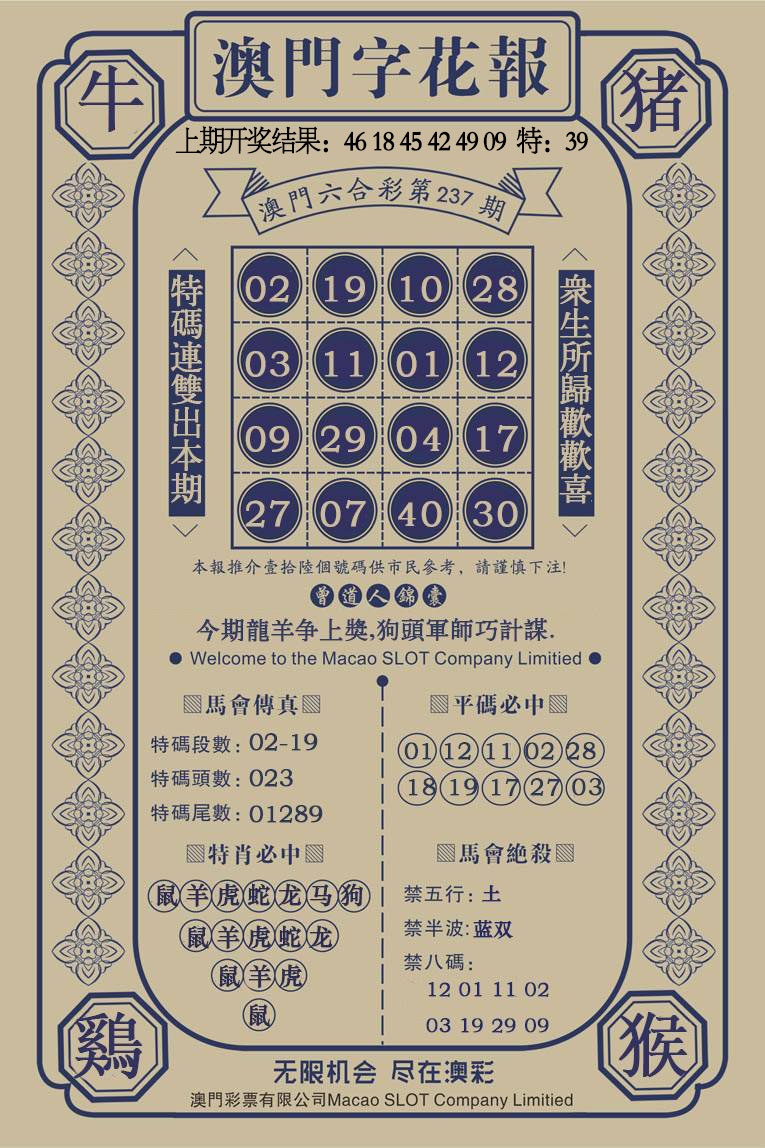237期澳门字花报[图]