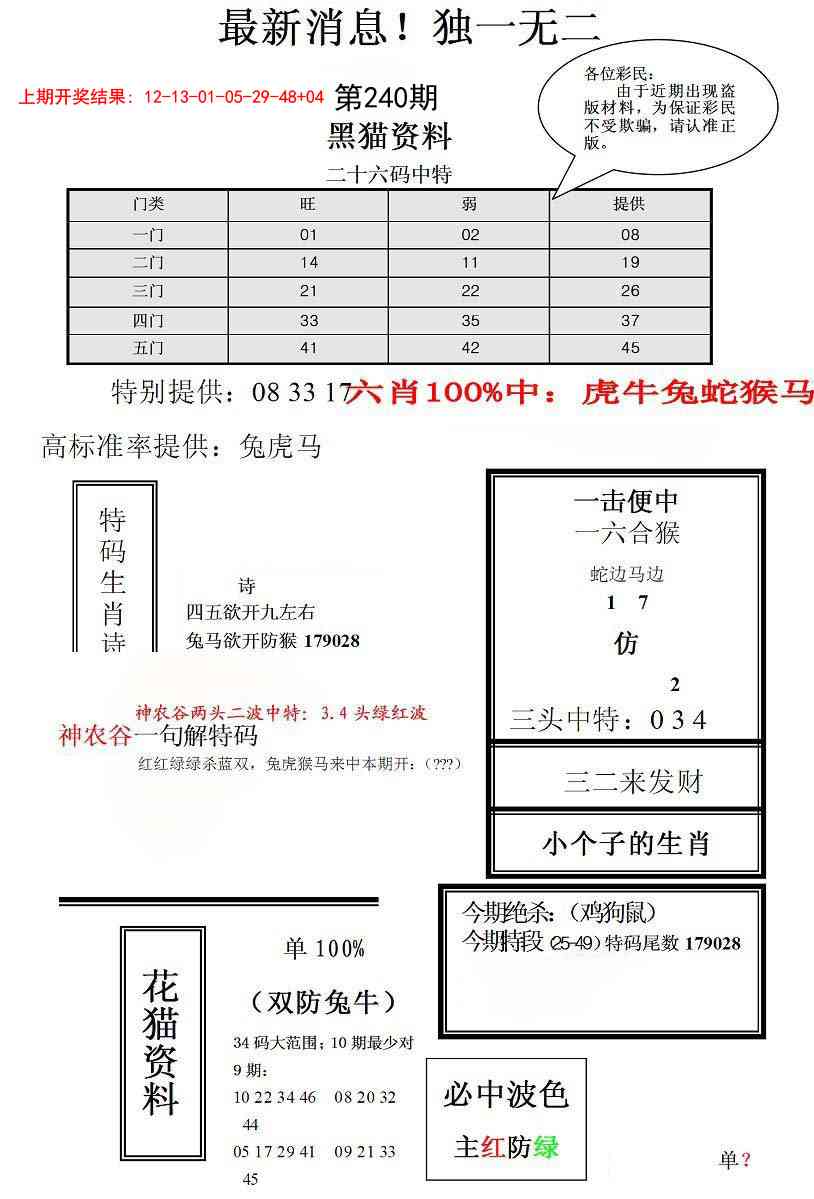 240期独一无二(正)[图]