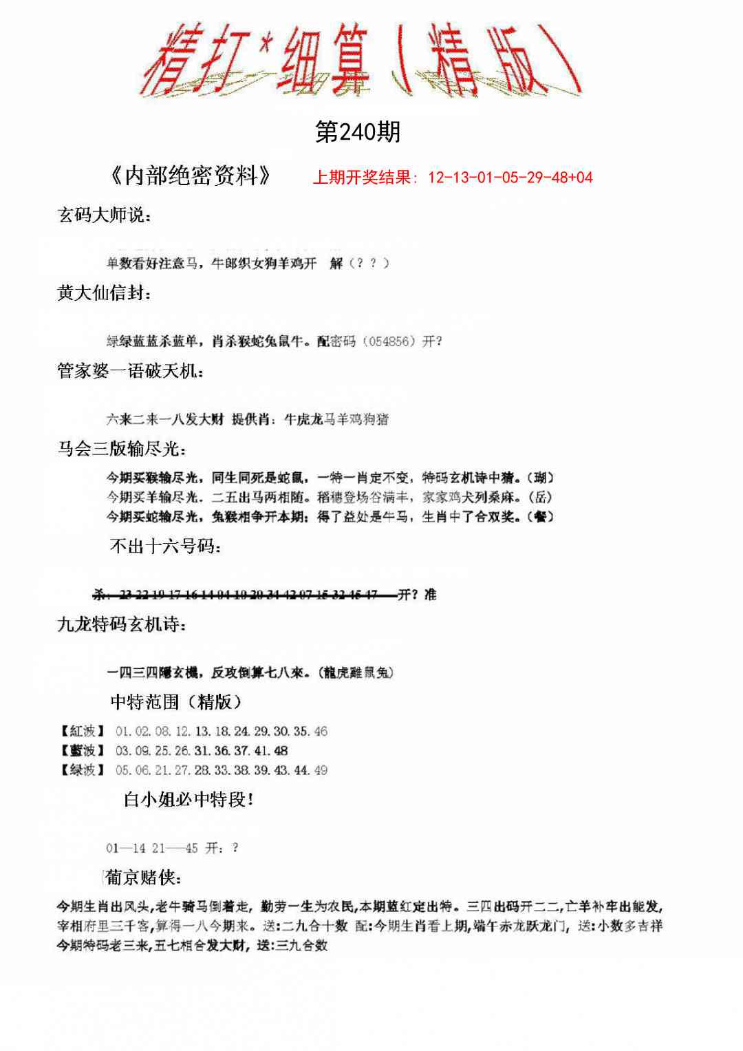 240期精大细算精版[图]