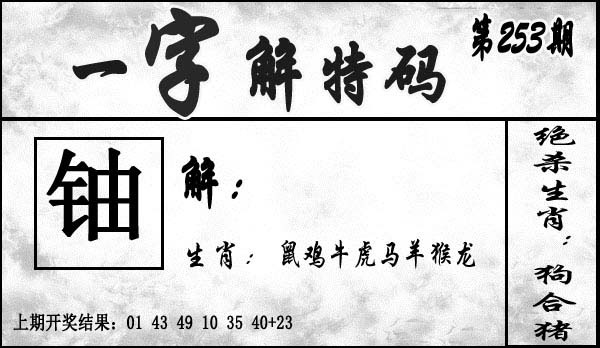 253期一字解特码[图]