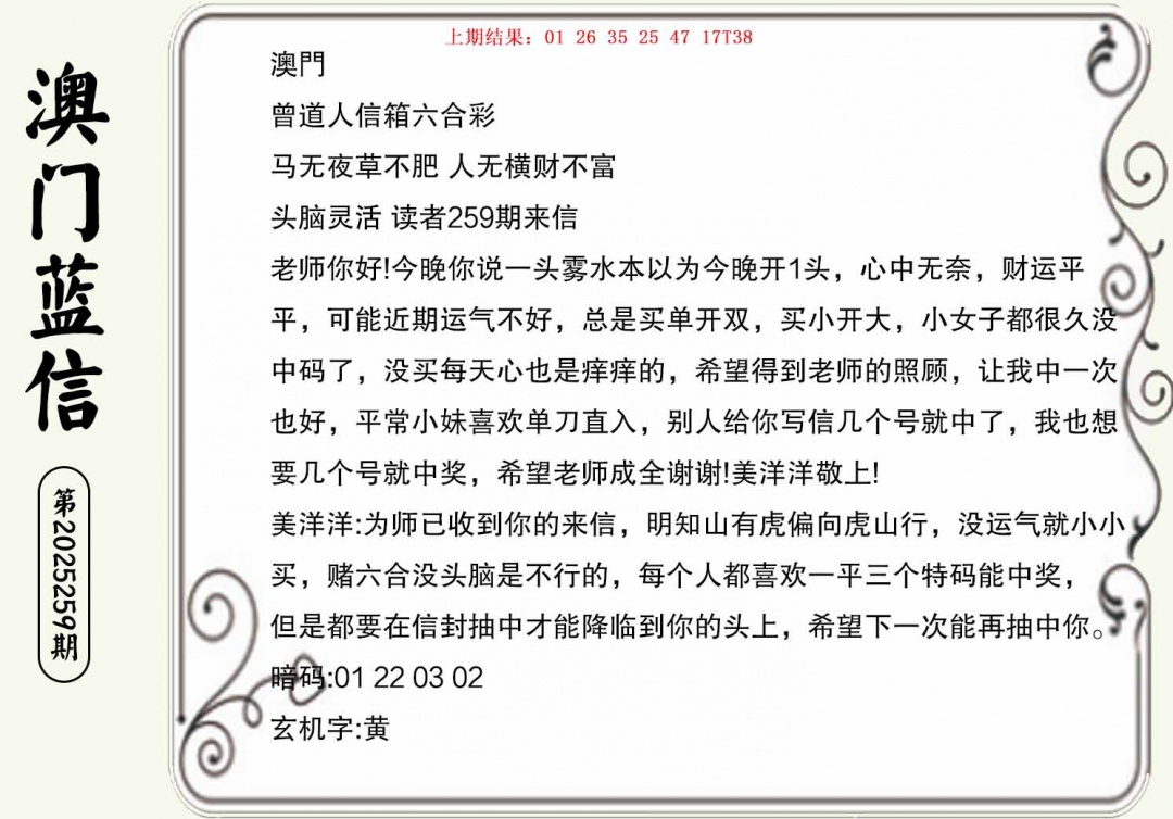 259期澳门蓝信A[图]