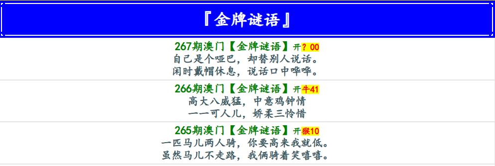 267期金牌谜语[图]