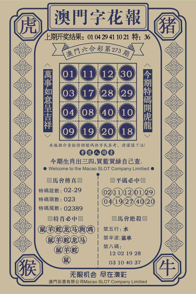 273期澳门字花报[图]