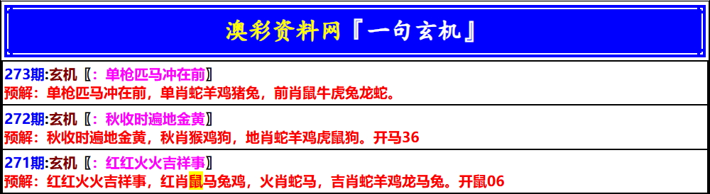 273期澳门一句玄机[图]