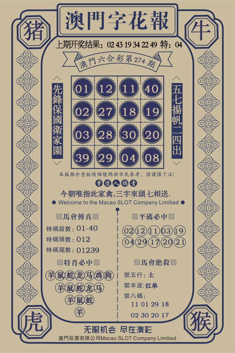 274期澳门字花报[图]