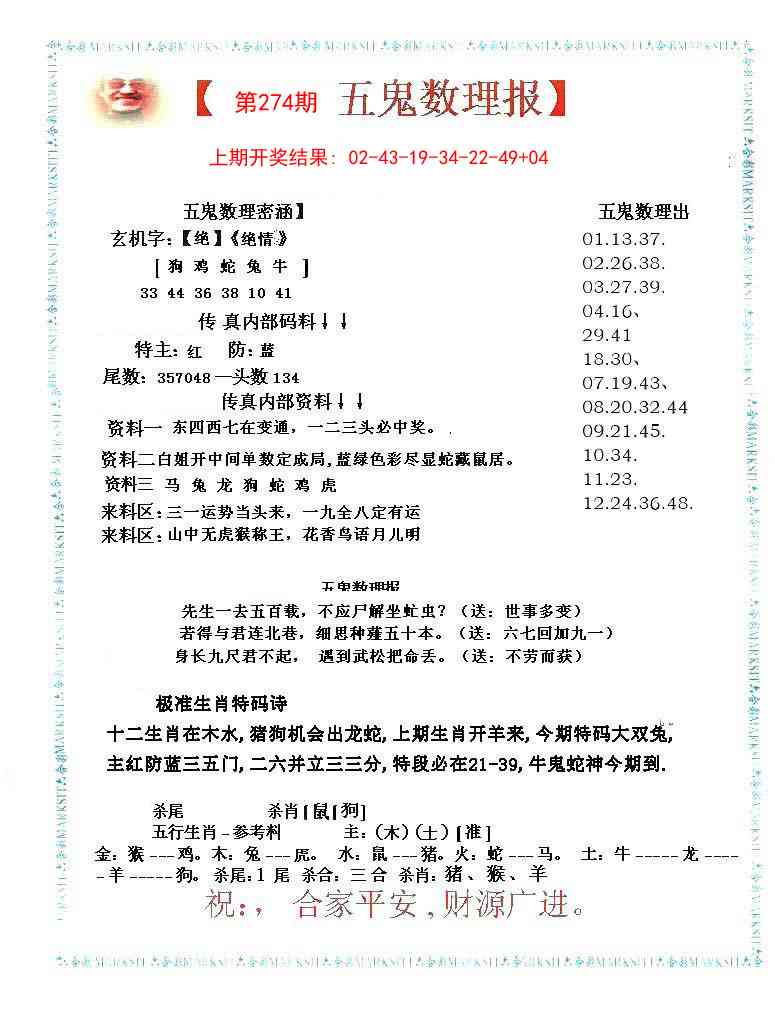 274期五鬼数理报[图]