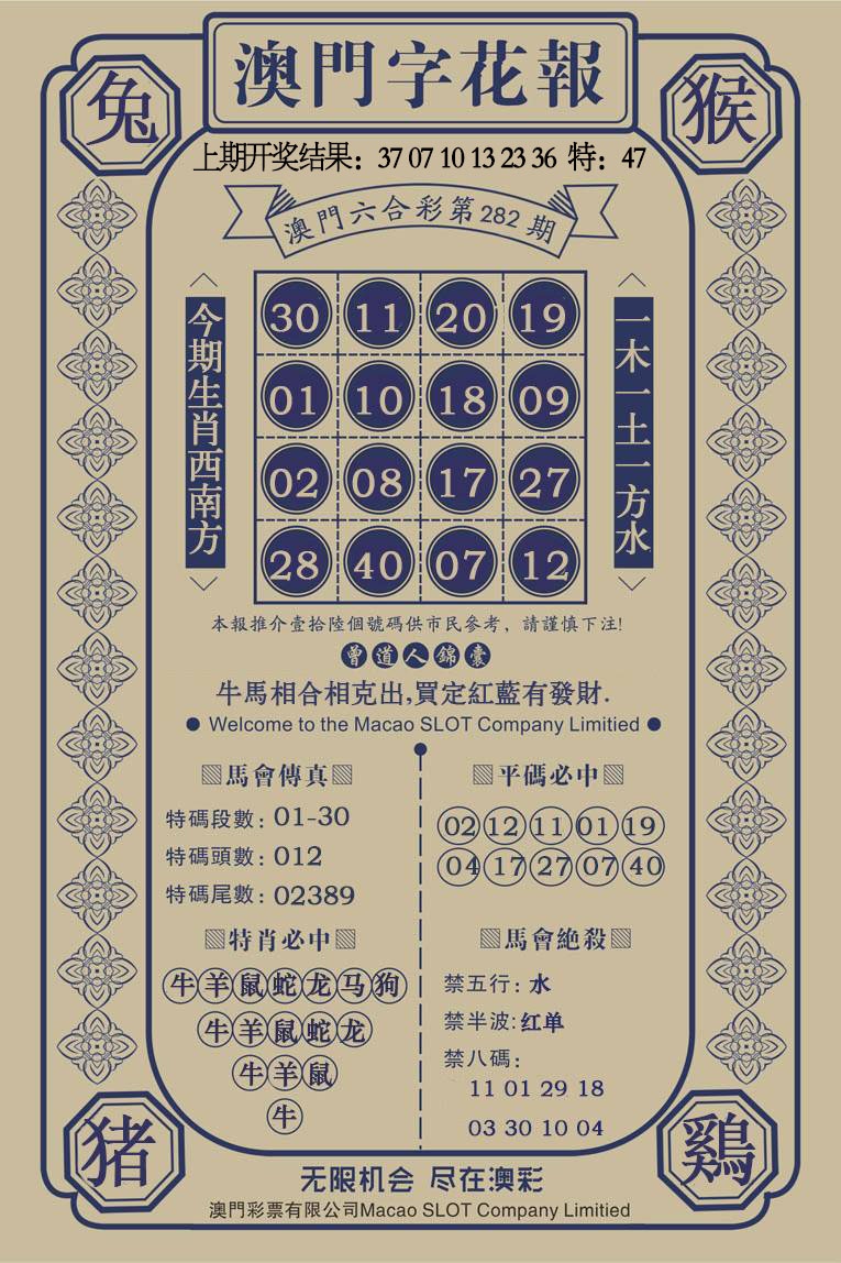 282期澳门字花报[图]