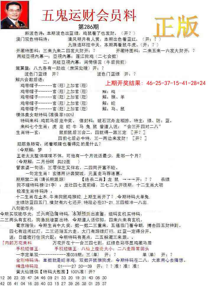 286期正版五鬼运财会员料[图]