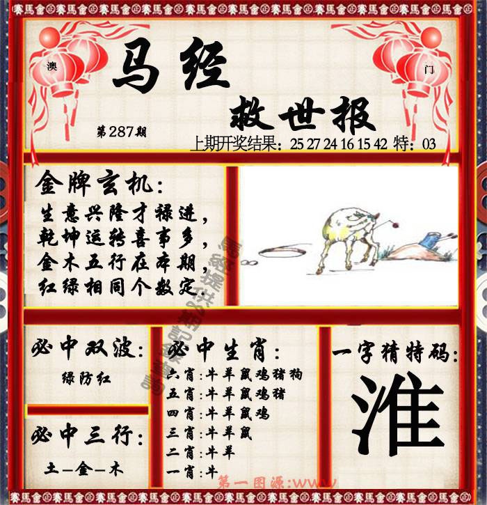 287期马经救世报[图]