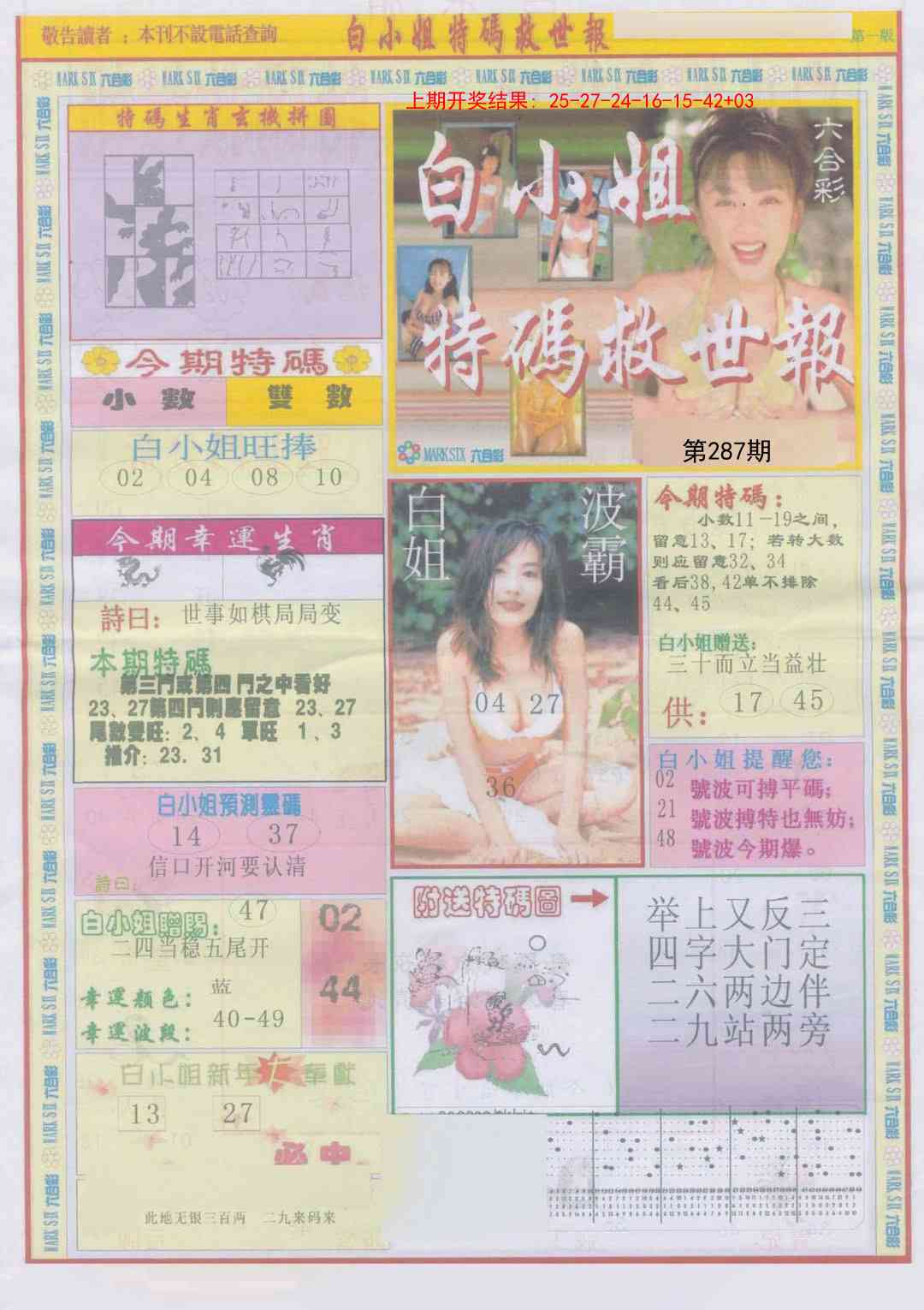 287期白小姐急旋风A[图]