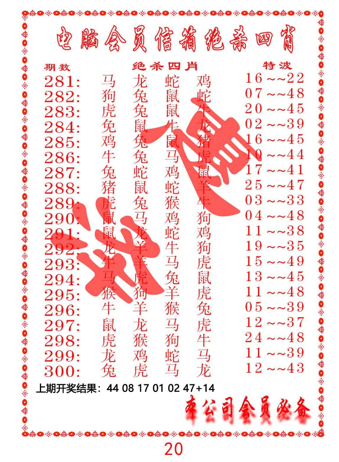 289期电脑会员-绝杀四肖[图]