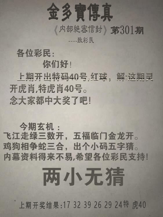 301期金多宝传真[图]