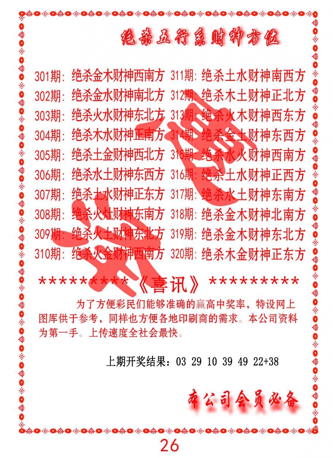 314期绝杀五行及财神方位[图]