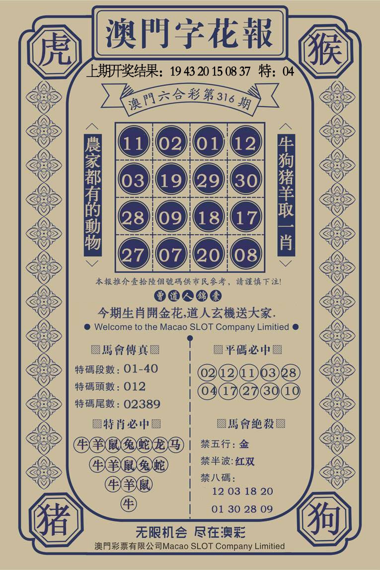316期澳门字花报[图]