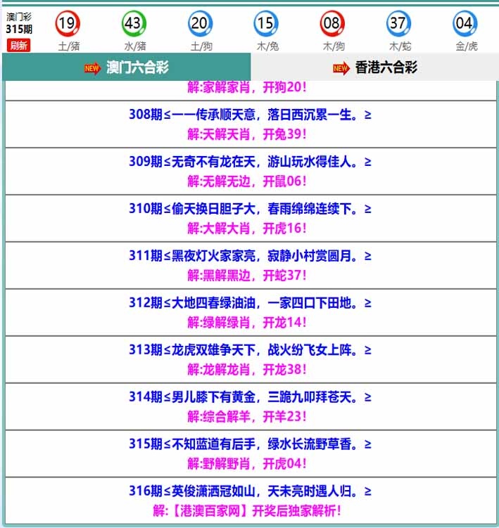 316期百家网玄机[图]
