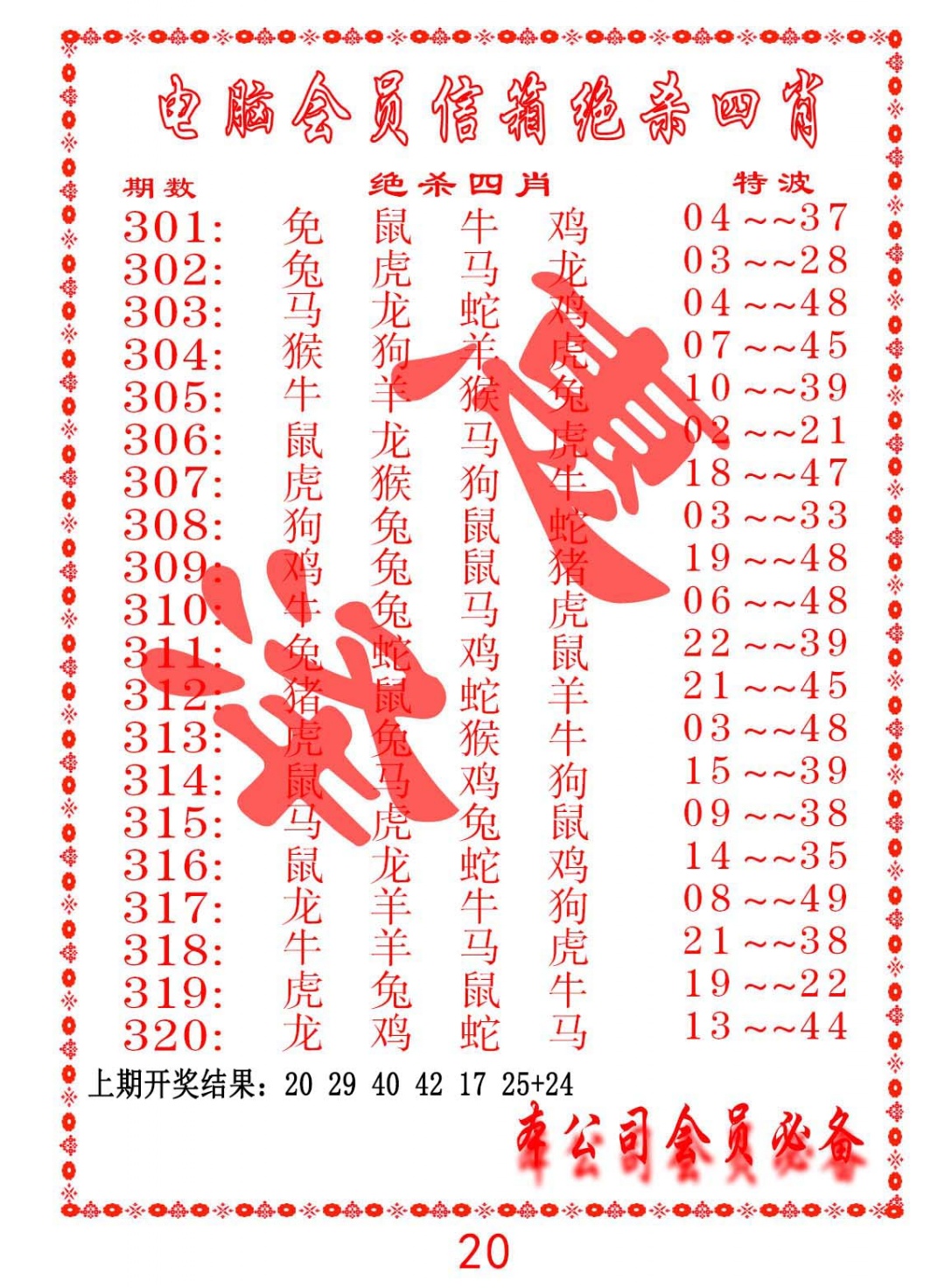 317期电脑会员-绝杀四肖[图]