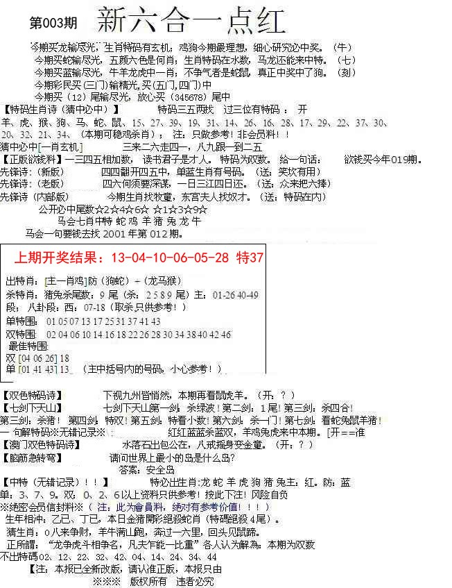 003期六合一点红A[图]
