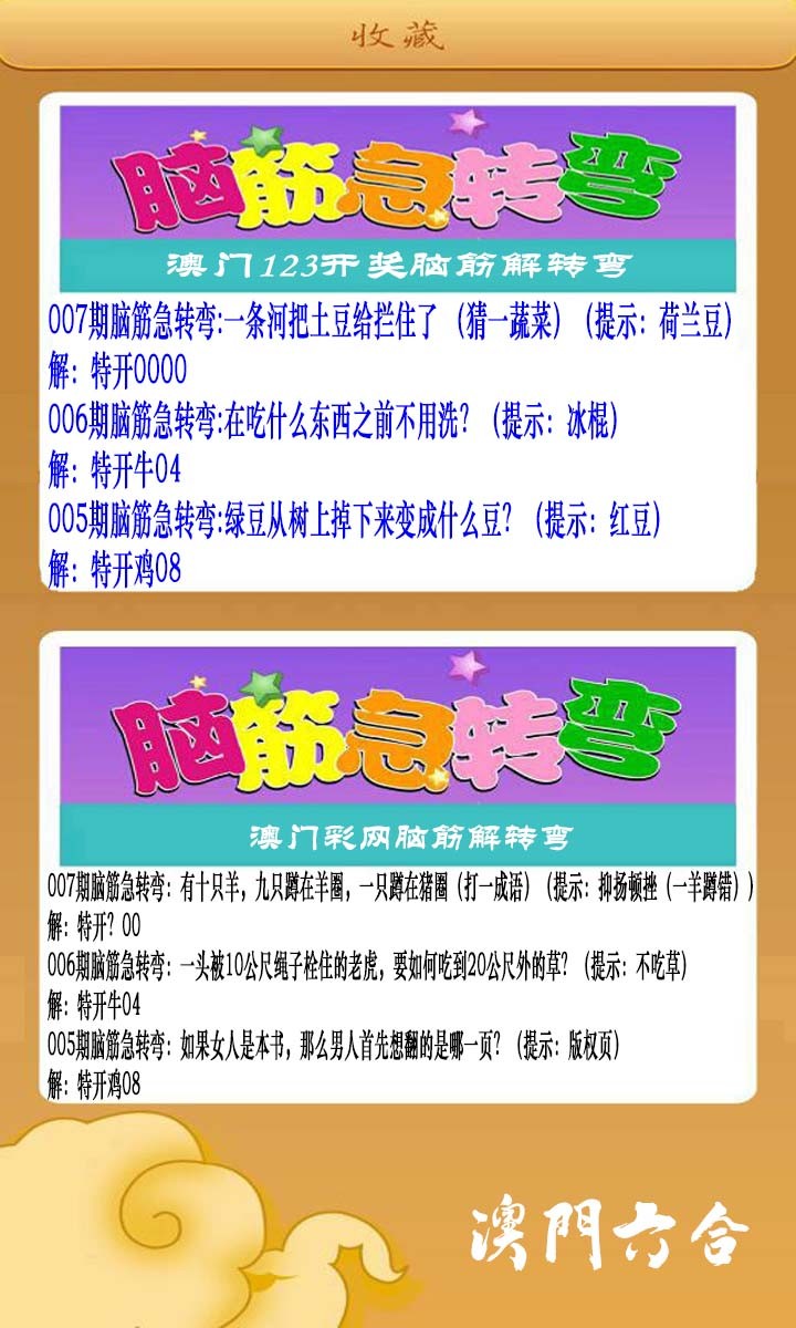 007期澳门脑筋急转弯[图]