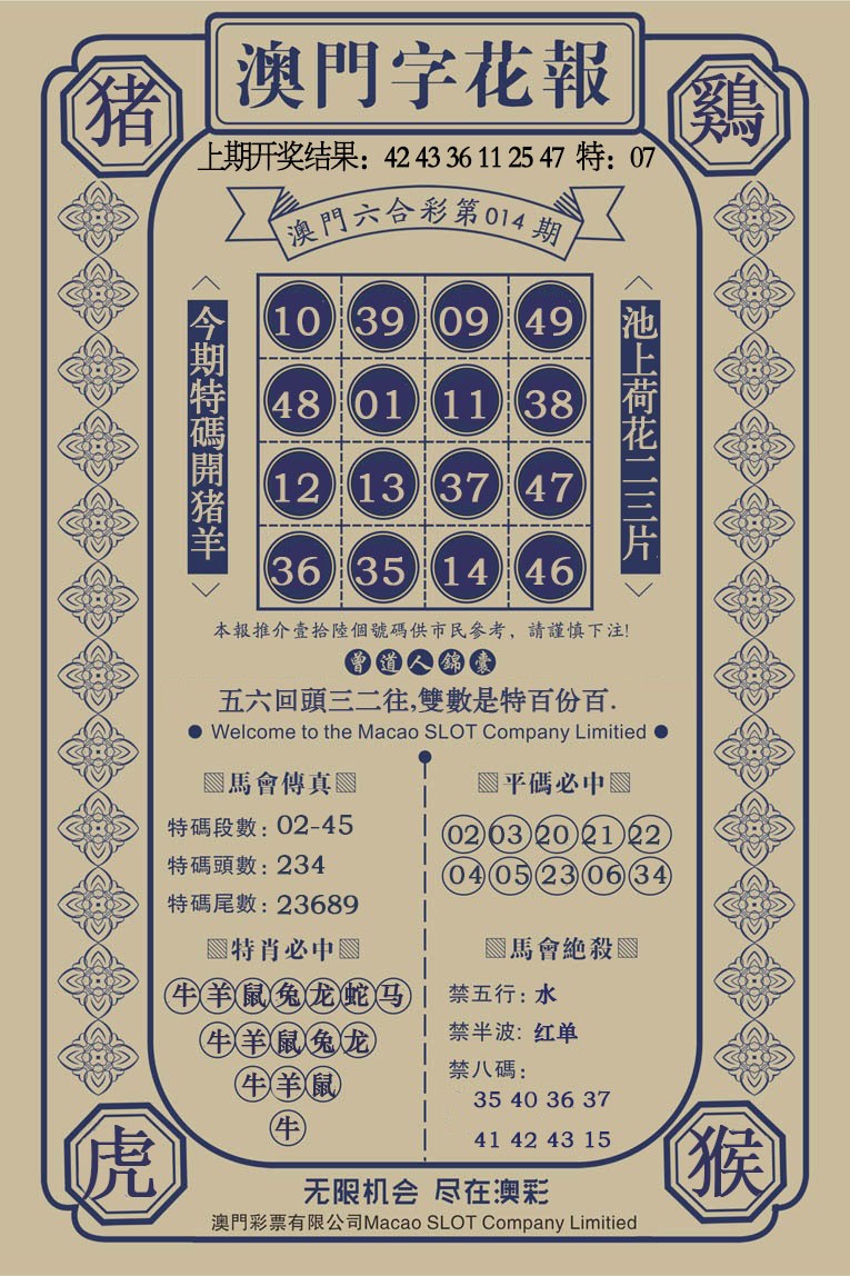 014期澳门字花报[图]