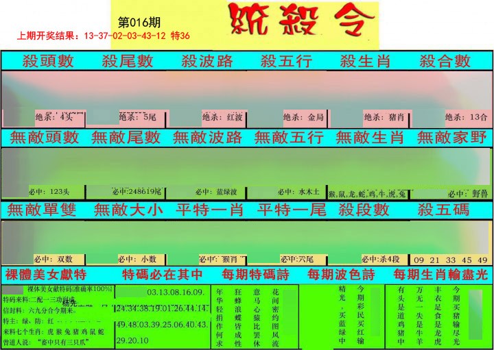 016期统杀令[图]