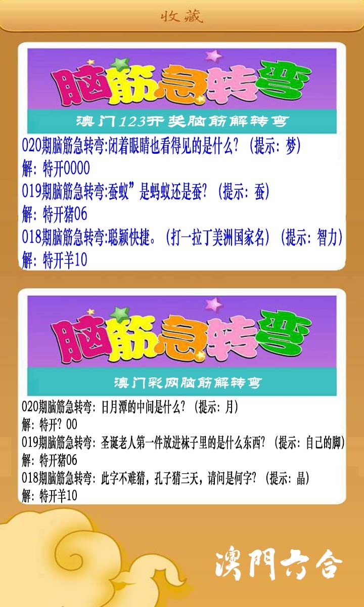 020期澳门脑筋急转弯[图]