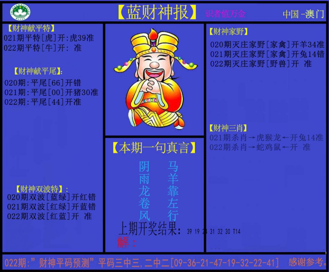 022期蓝财神[图]