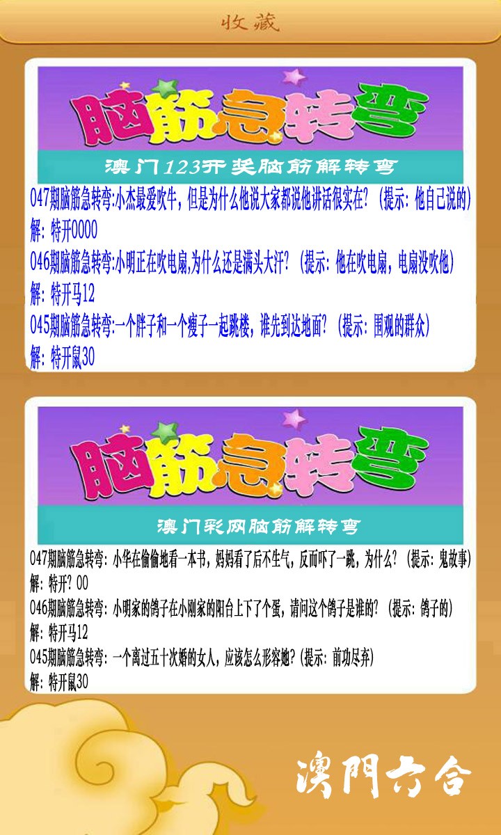 047期澳门脑筋急转弯[图]