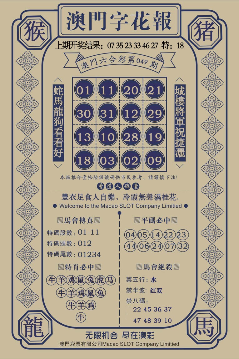 049期澳门字花报[图]