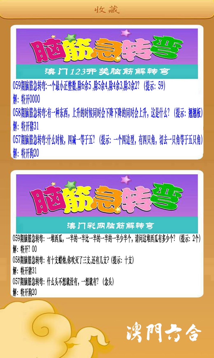 059期澳门脑筋急转弯[图]