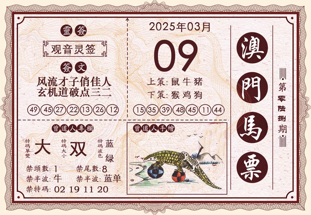 068期澳门马票[图]